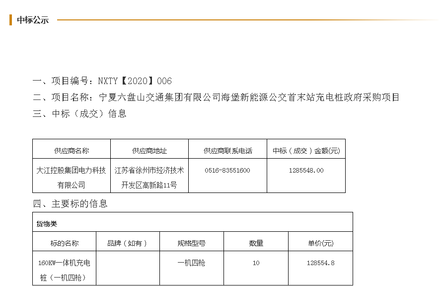 恭喜我司中標寧夏六盤山交通集團有限公司海堡新能源公交首末站充電樁政府采購項目