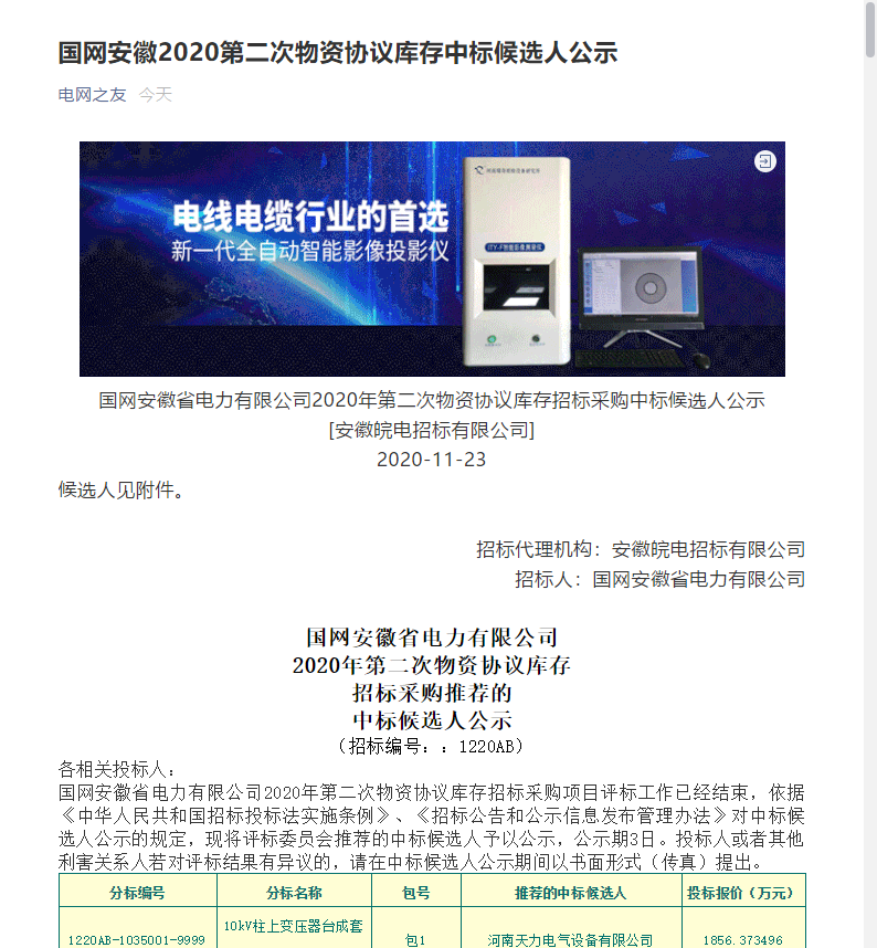 恭喜我司中標國網安徽2020第二次物資協議庫存